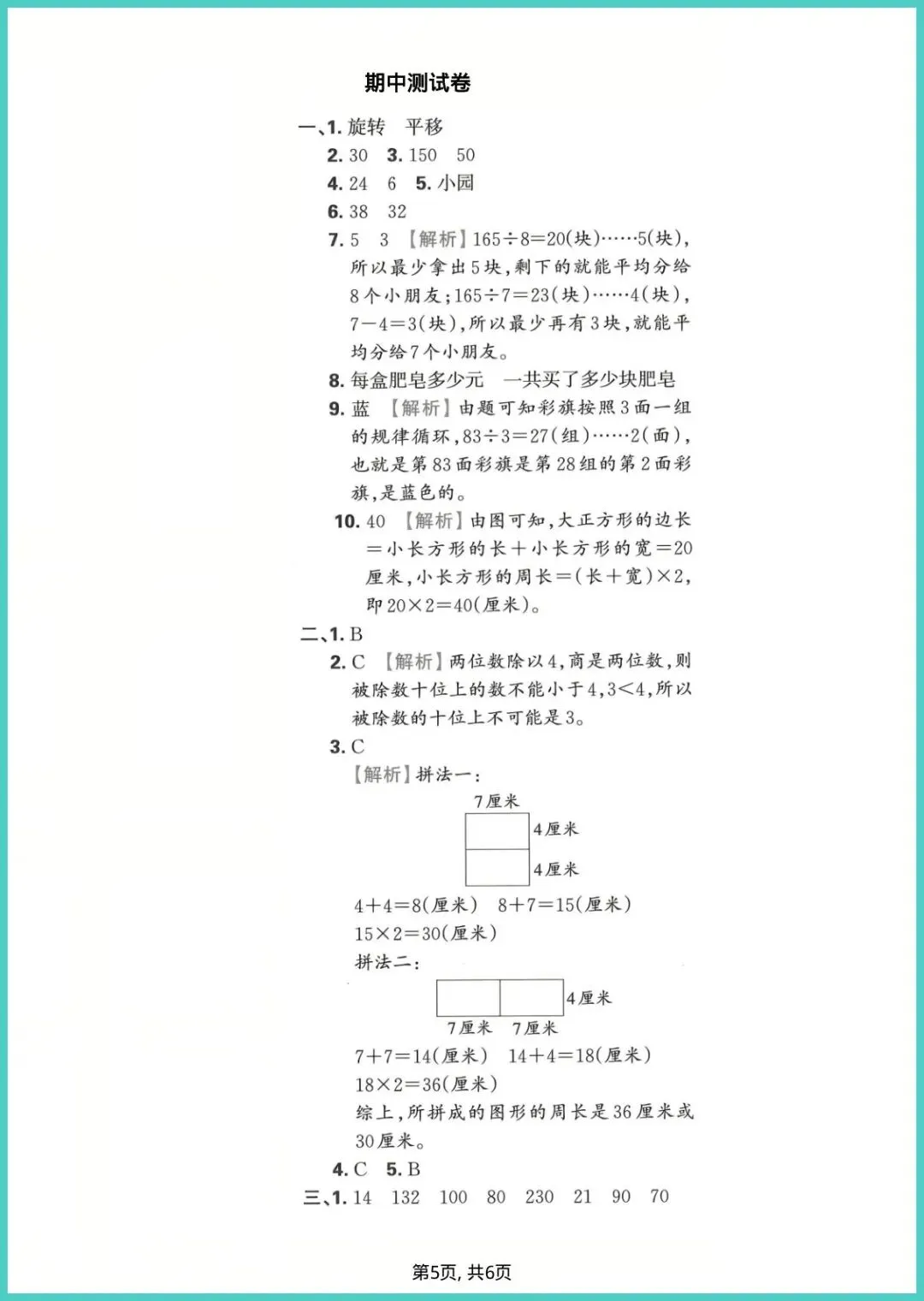 【免费下载】三年级(下)数学_期中拔尖测试卷2《人教版》 | PDF完整高清电子版可打印