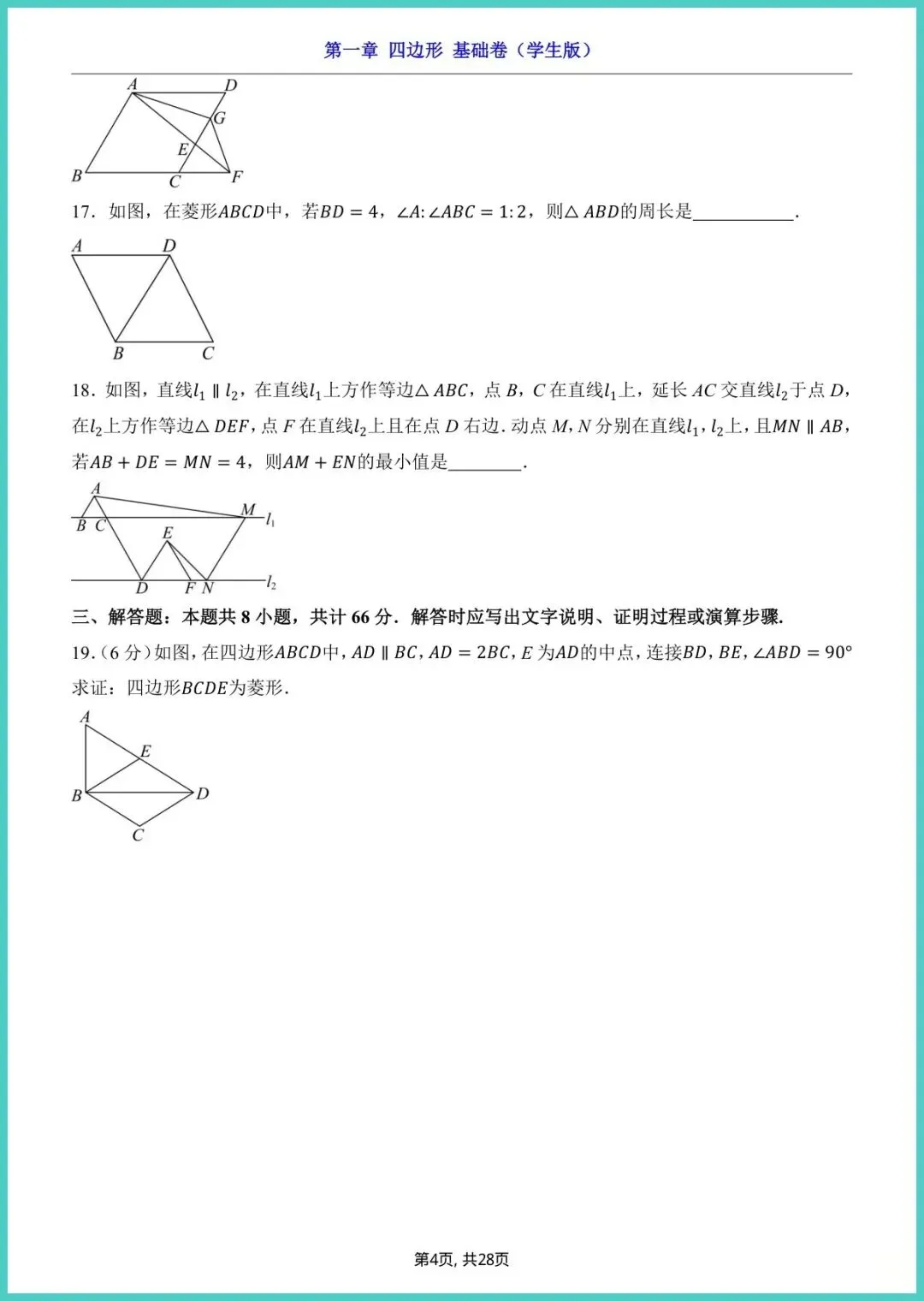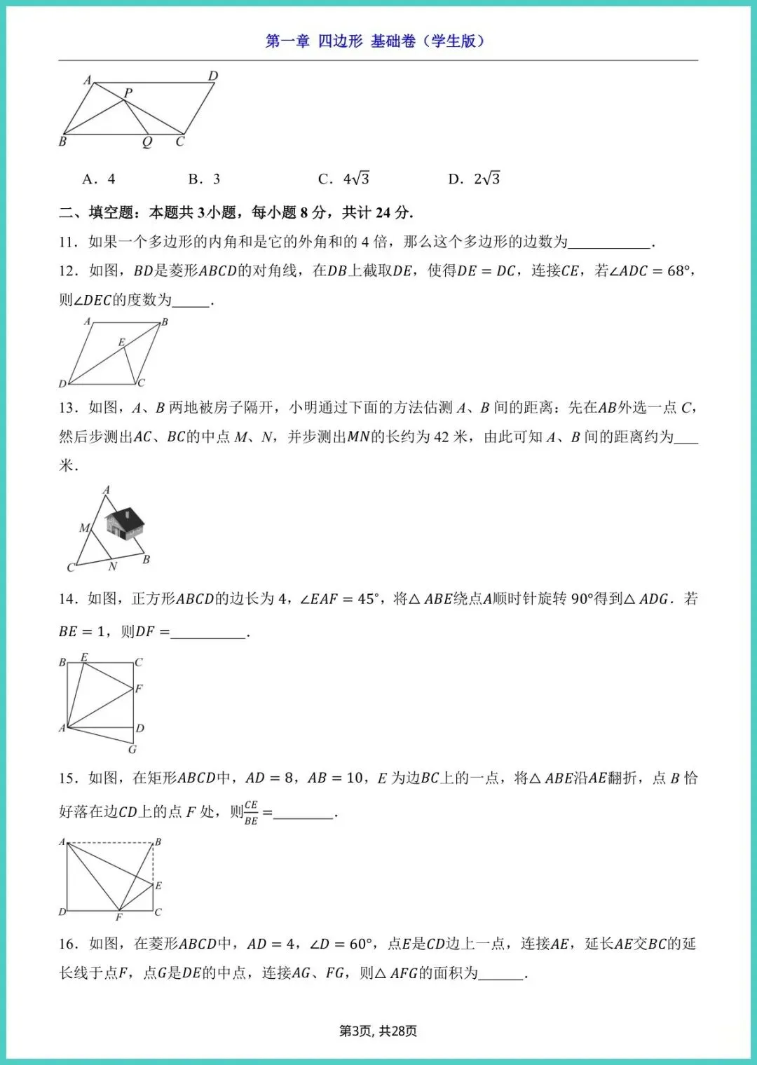 【免费下载】八年级(下)数学第1章四边形_基础卷(湘教版) | PDF完整高清电子版可打印