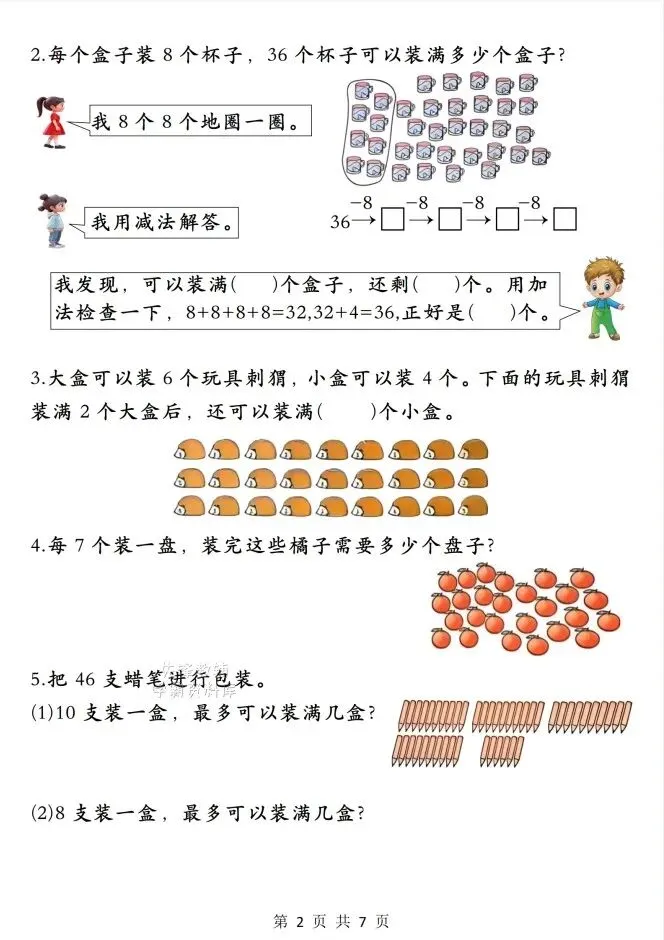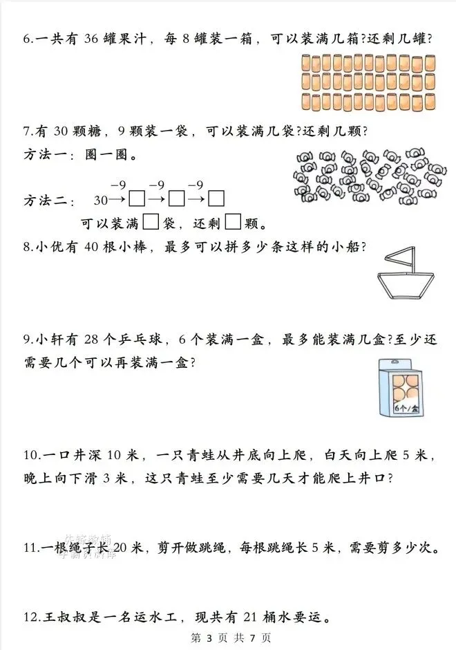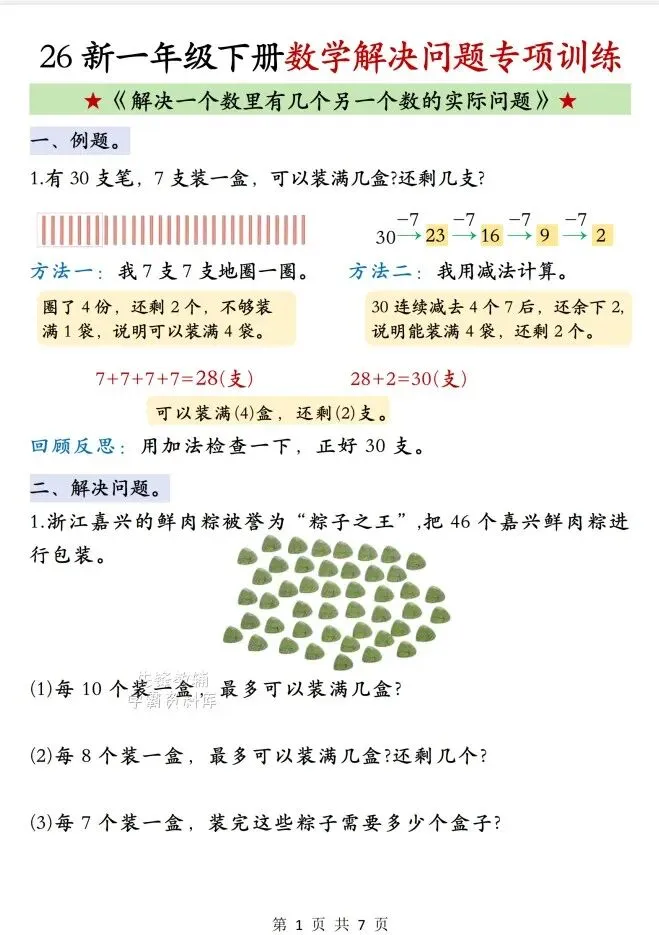 今天给大家整理了26春一年级(下)数学《解决一个数里有几个另一个数的实际问题》,转发给朋友或班级群,受益更多人,帮助孩子学习!