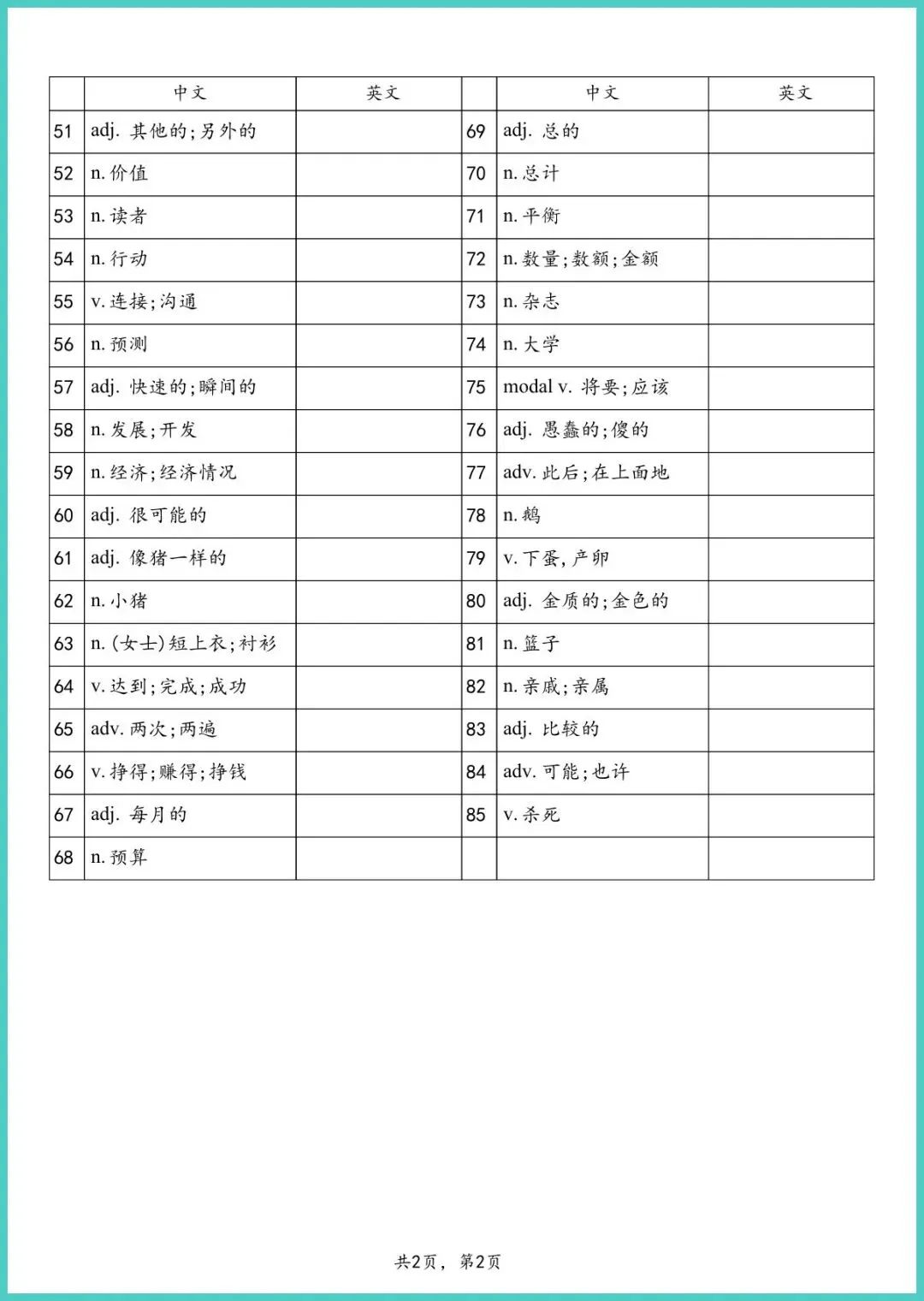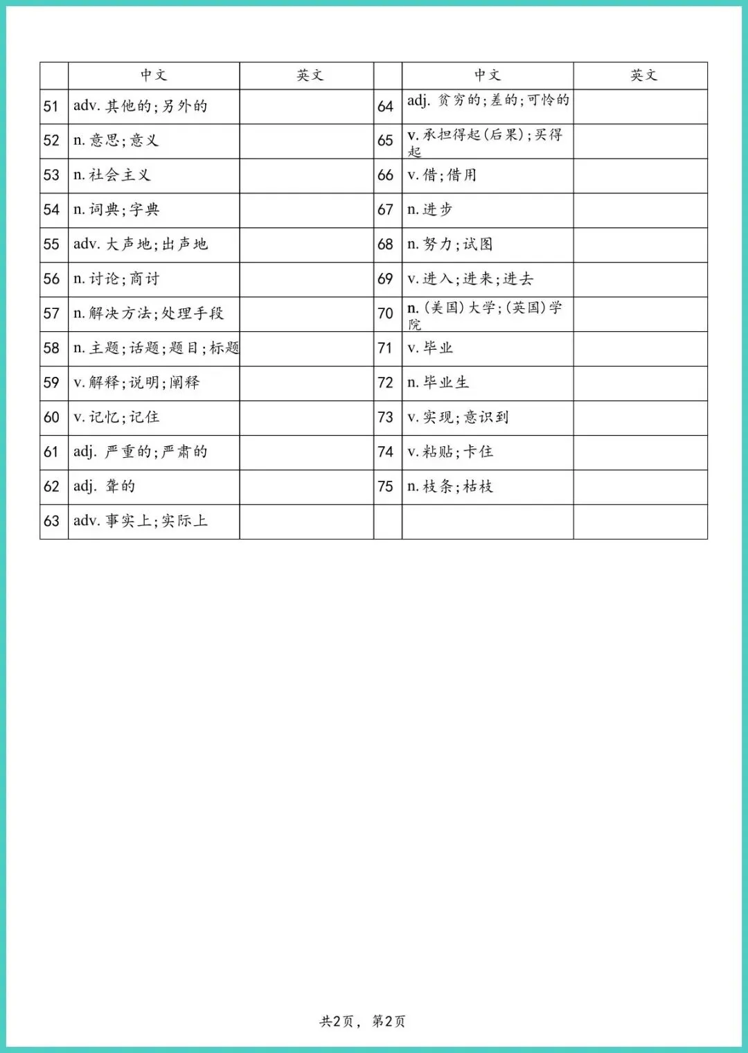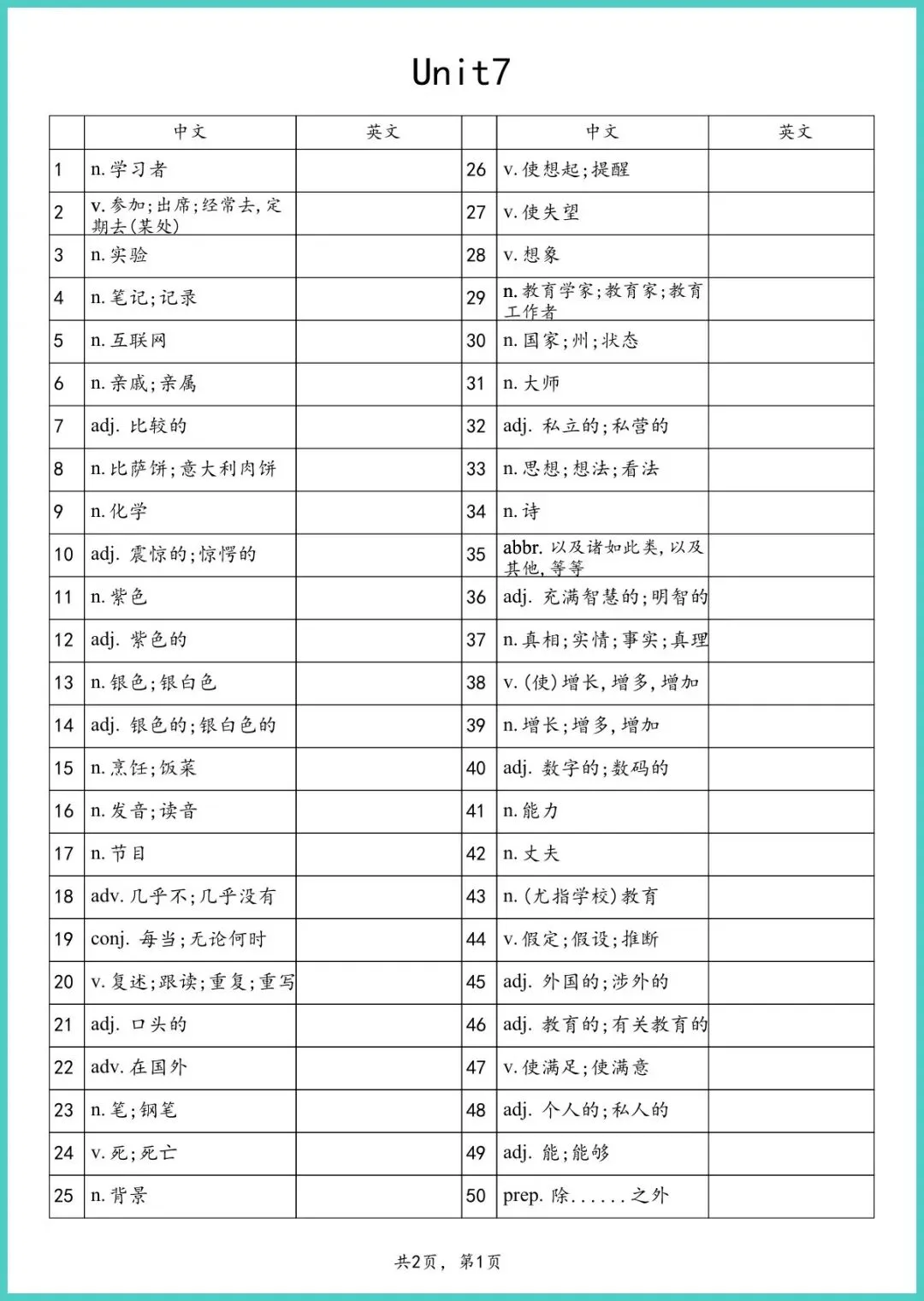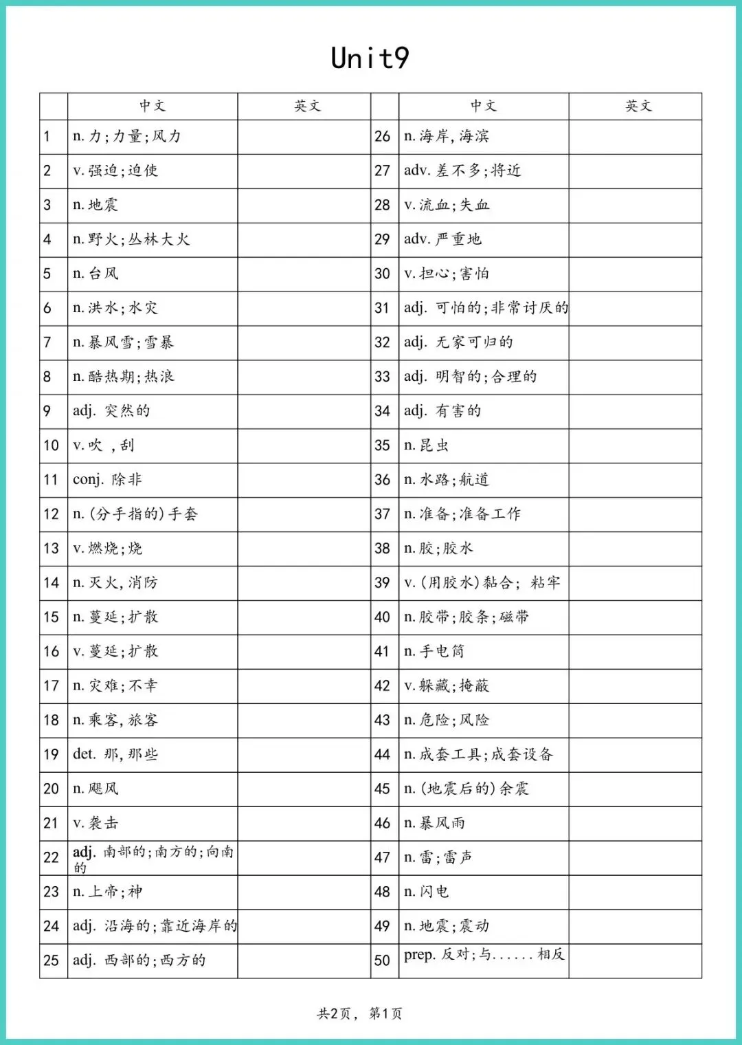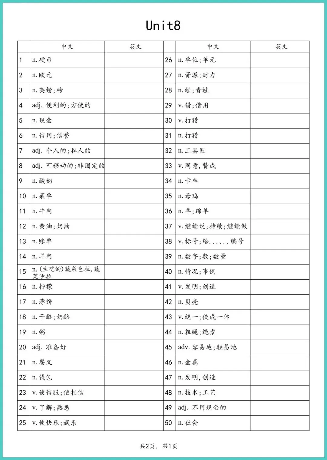 【免费下载】八年级(下)英语单词表默写_不带音标(仁爱版) | PDF完整高清电子版可打印