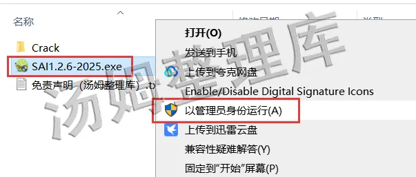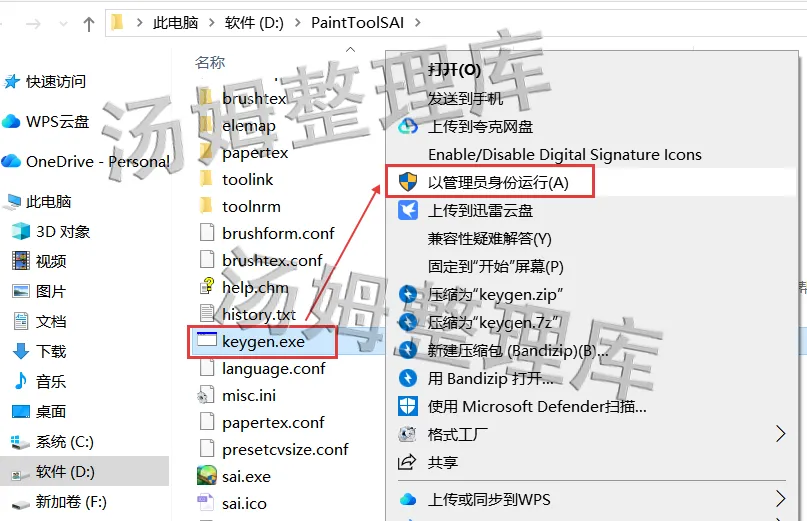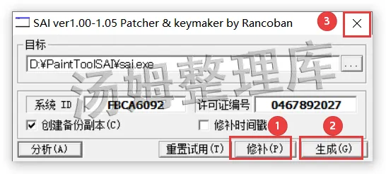 [温馨提示]:我们提供用户下载的所有内容均来自互联网。仅限技术交流,不得用作商业。(解压安装文件前,先退出所有杀毒软件(包括 Windows 系统自带的 Defender和第三方软件等),这样激活文件不会被误删)1.下载解压SAI1.2.6-2025软件安装包并打开。2.选中【SAI1.2.6-2025】程序,右键【以管理员身份运行】。6.选择SIA软件安装路径,可以自行选择,也可以像我这里直接把地址栏首字母C改为D就自动安装到电脑D盘了,选择好点击【下一步】。10.先取消勾选【运行 PaintTool SAI】再点击【完成】。11.回到解压好的SAI安装文件夹,打开【Crack】文件夹。13.到电脑桌面,选中【SAI图标】右键选择【打开文件所在的位置】。15.选中粘贴过来的【keygen】程序,右键【以管理员身份运行】。17.找到【sai】程序选中后,点击【打开】。(一般打开就能看到,如果没看到依次打开自己前面选择的安装路径里面)19.先点【修补】再点击【生成】最好点【X】关闭。21.可以进入软件界面而且没有弹窗,此时SAI 2025版就安装成功了!(如果显示试用,重新进行激活操作(第16-19步),点击任意键,直到激活成功)1.安装提供的所有下载文件均是网络收集,请于下载后的24小时内删除。如需体验更多乐趣,请支持正版。2.我们提供用户下载的所有内容均来自互联网。如有内容侵犯您的版权或其他利益的,请联系我们会在收到消息后24小时内处理。