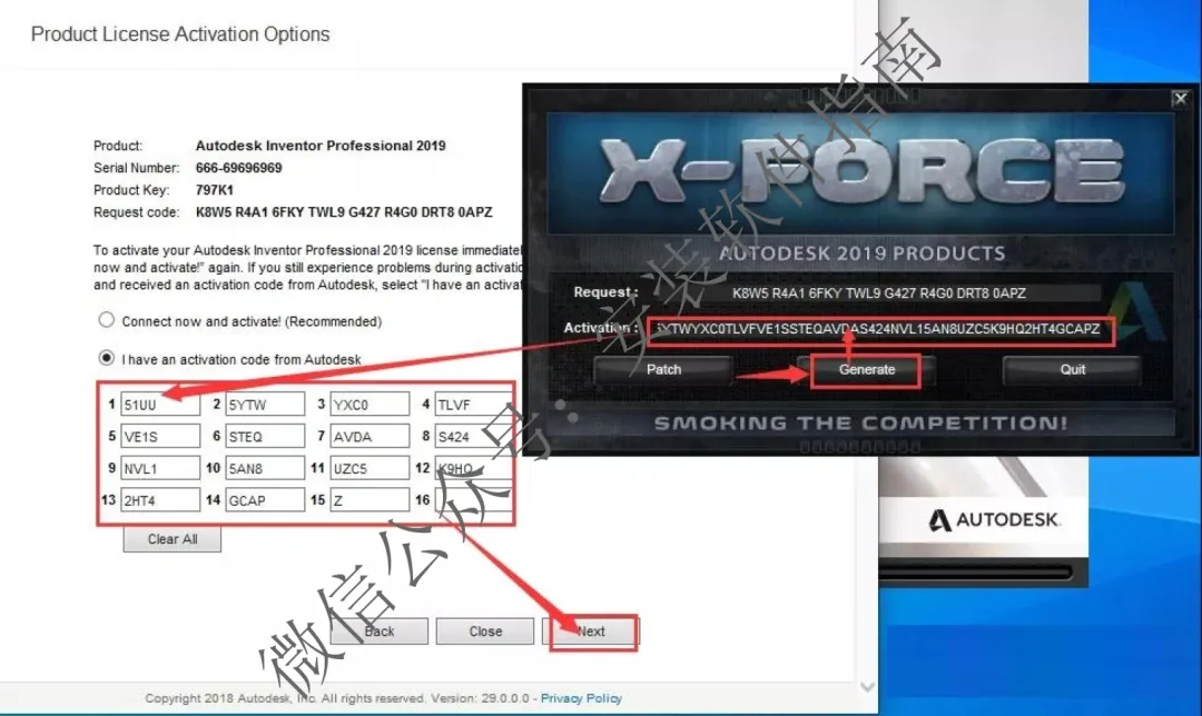 22.接着点《Generate》将Actication里面生成的激活码全选并复制粘贴到激活码框里,点《Next》