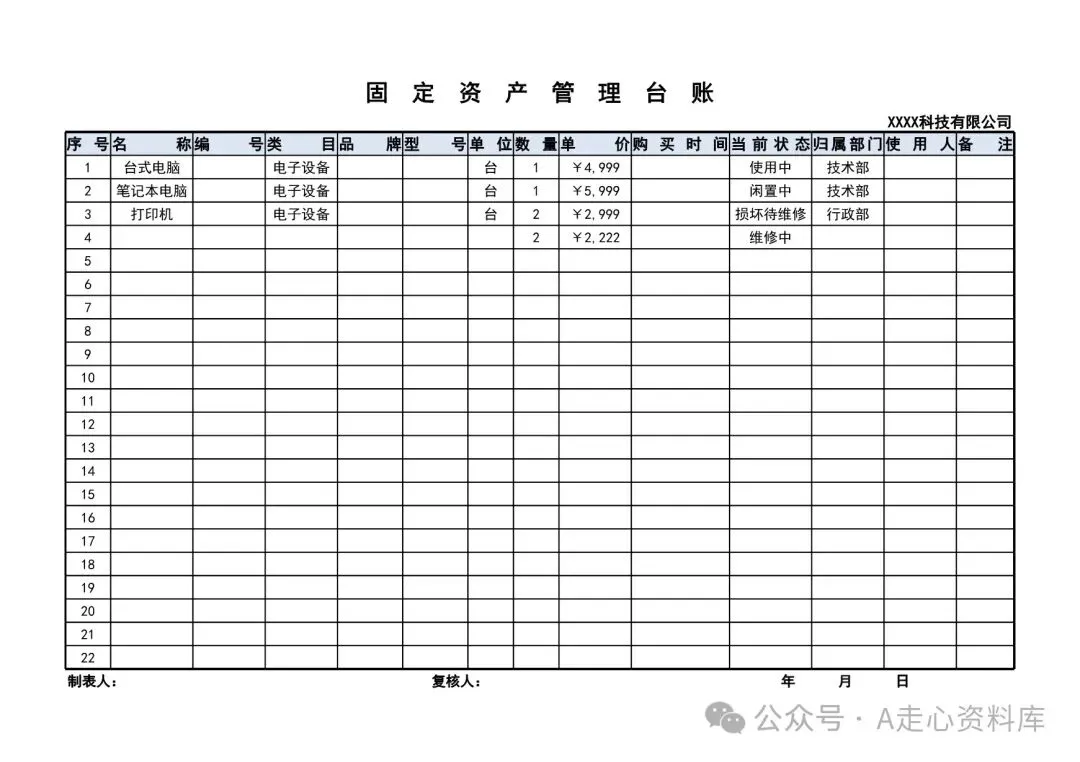 回复关键词“固定资产明细表”领取!