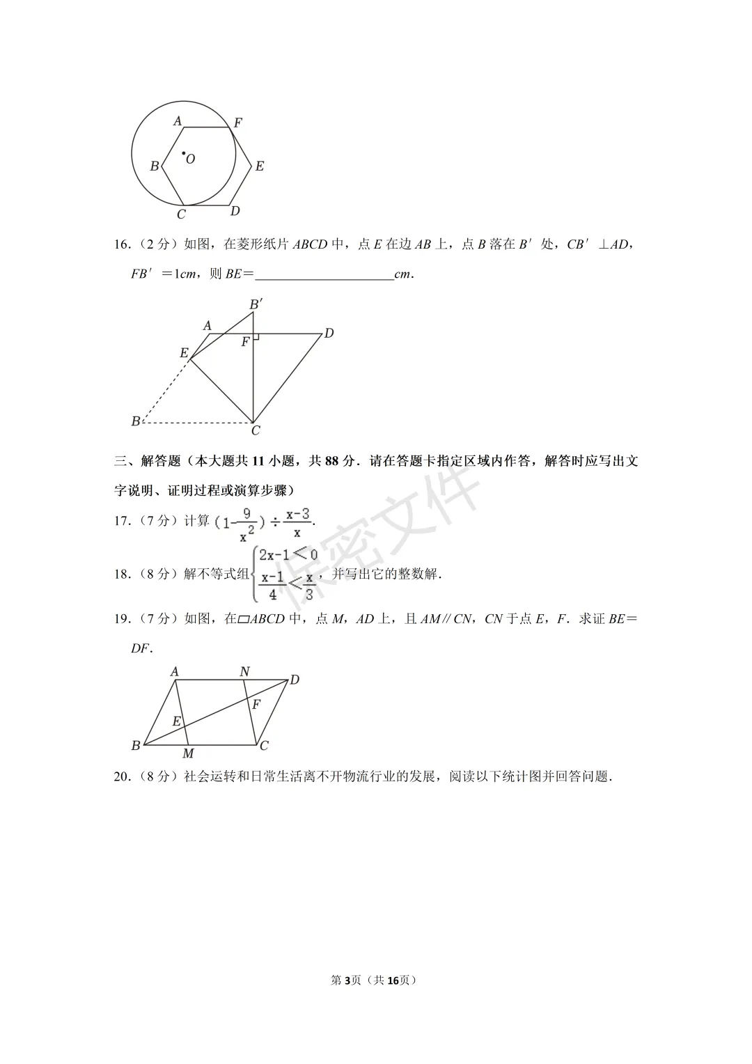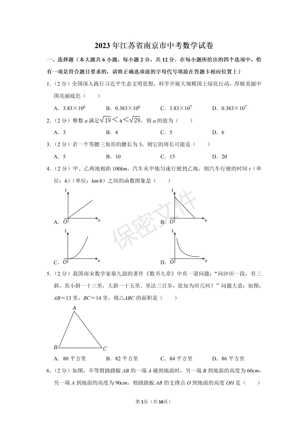 今日分享:2023年南京市中考数学试卷,可打印完整版!