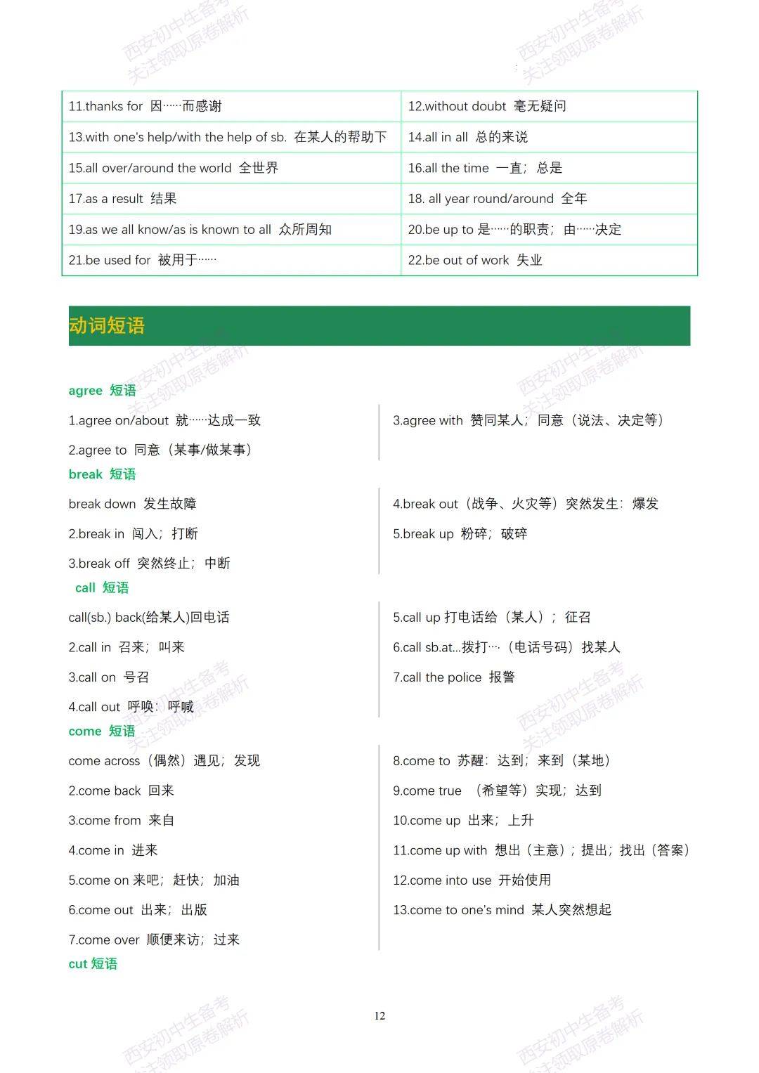 【免费下载】2026 西安中考英语必背短语完整版|全汇总