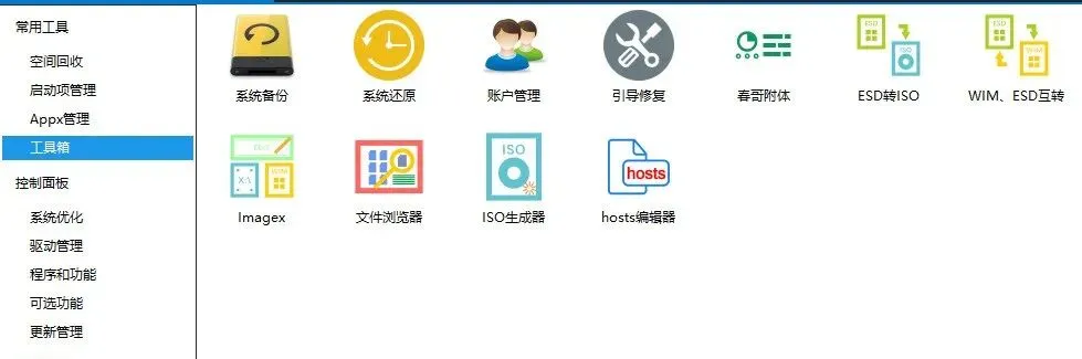 主要针对Windows系统底层架构的优化和修复,比如空间回收、启动项管理、系统优化等诸多功能。