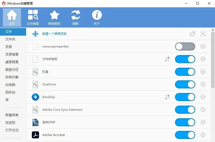 这款右键管理工具就是能够帮你整理右键菜单轻量小巧的强大工具,为你提供清理右键菜单的功能,不想哪个软件绑定显示,直接关闭即可。