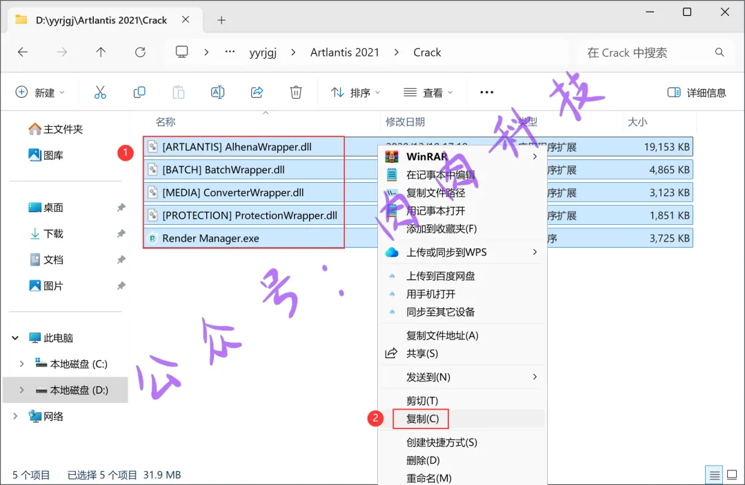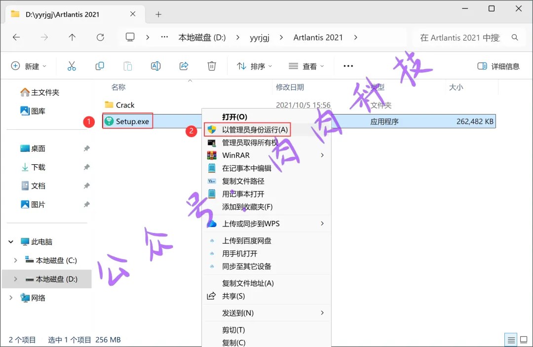 1.将Artlantis 2021软件安装包下载到电脑上,我是下载到D盘的一个英文文件夹内。右键Artlantis 2021安装包,点击【解压到当前文件夹】