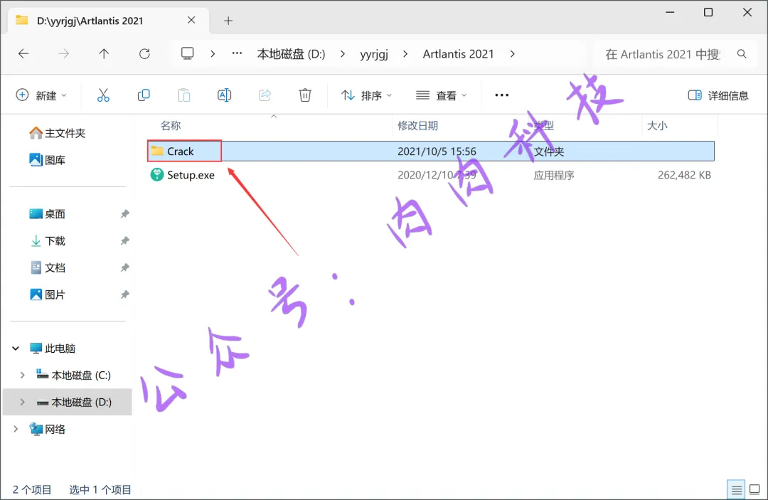 12.返回到Artlantis 2021文件夹,双击打开【Crack】文件夹