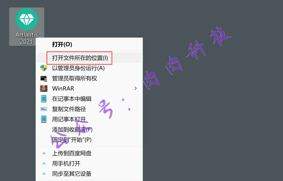 15.回到电脑桌面上,右键【Artlantis 2021软件快捷方式】,点击【打开文件所在位置】