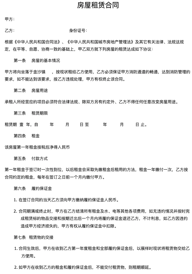 本文分享的是【租赁合同】