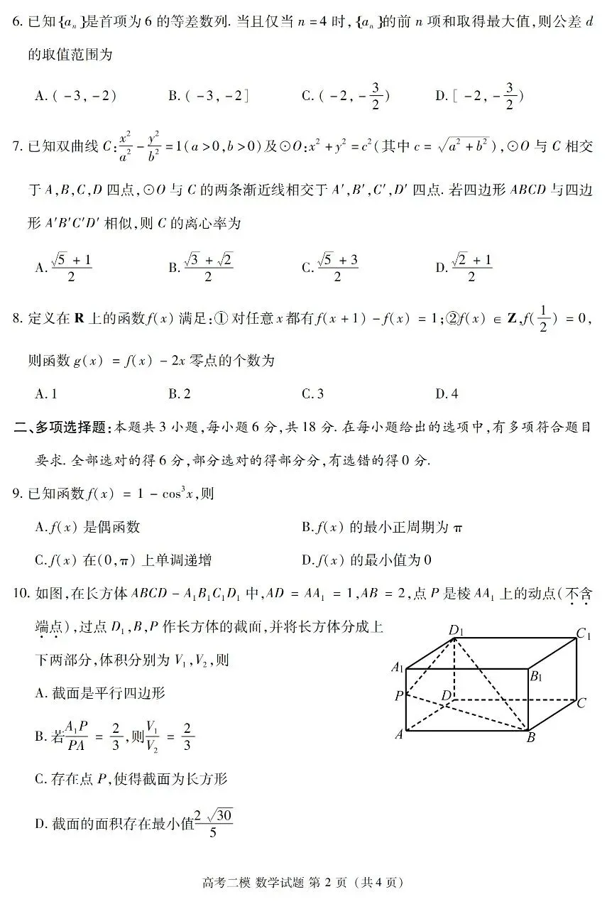 >【免费下载】江西省九江市2026年第二次高考模拟统一考试数学试题及答案202604