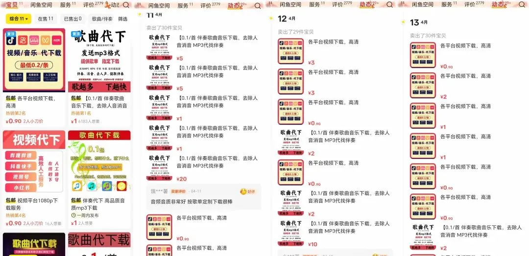 闲鱼搜了一下,发现这个市场太火热了,有的店铺销量2000多单,有的小100-500单。