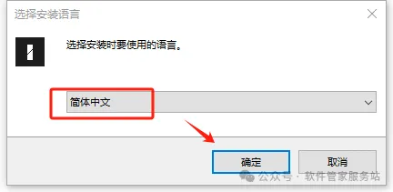 第三步:以windows软件安装包为例,双击运行windows安装包,选简体中文,并点确定。