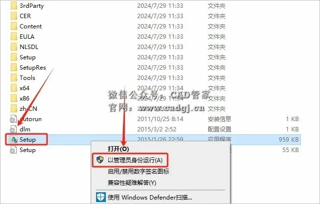 5.鼠标右击【setup】安装程序,选择【以管理员身份运行】。