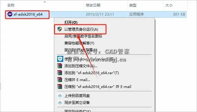 20.鼠标右击【xf-adsk2016_x64】注册机,选择【以管理员身份运行】。