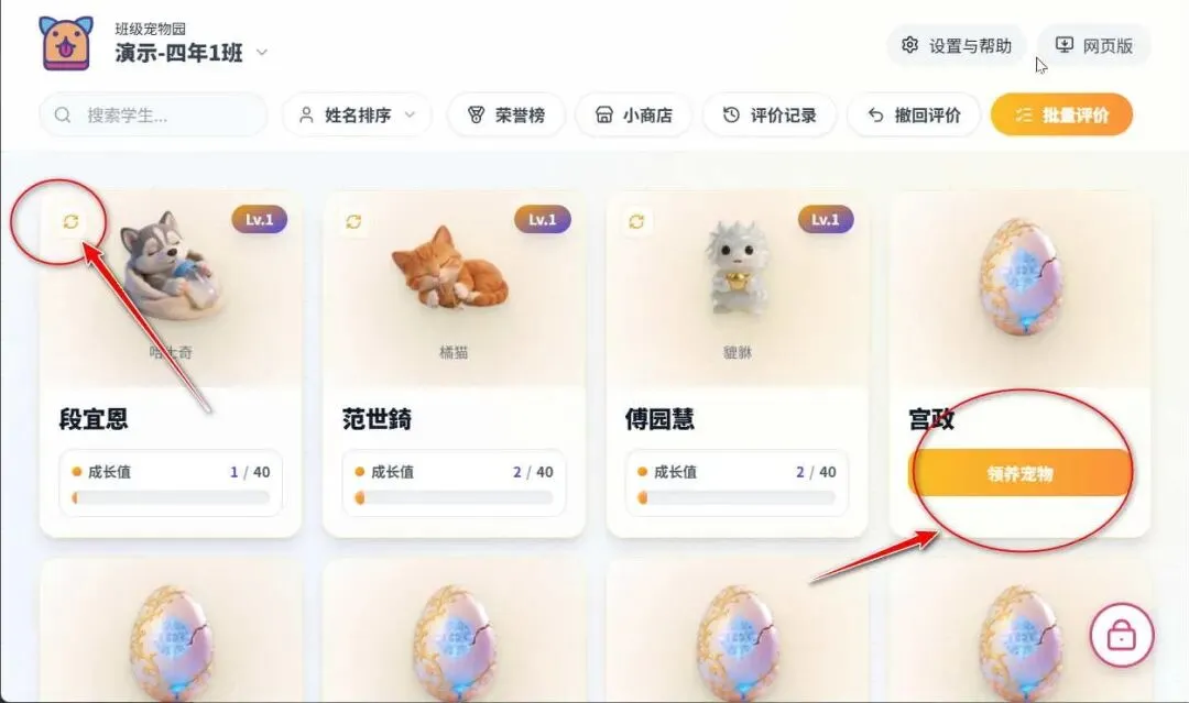 3..一键分配宠物完成学生添加后,点击一键分配,自动为每位学生绑定专属宠物。