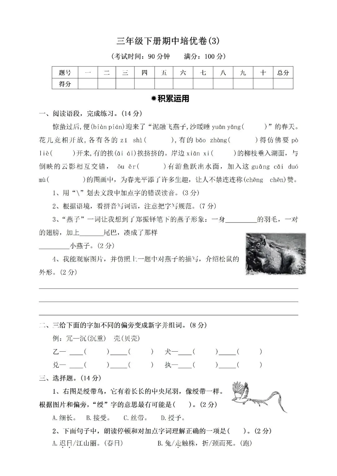 >三年级下册期中培优卷③附答案(免费下载)
