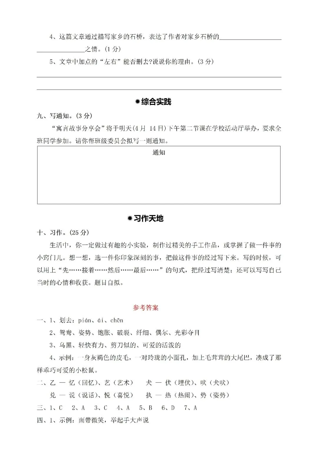 三年级下册期中培优卷③附答案(免费下载)