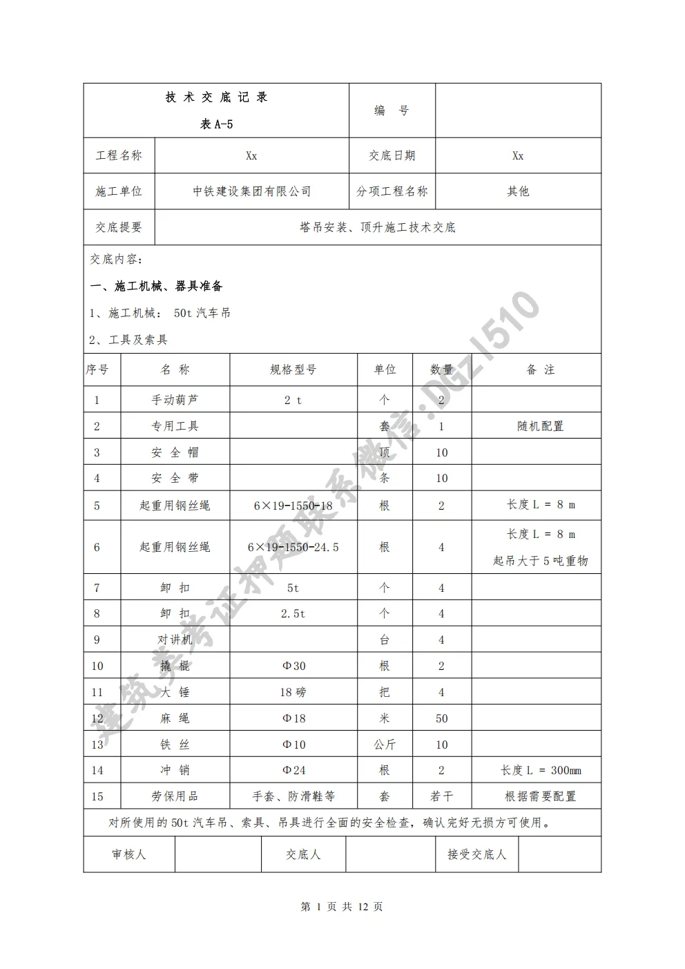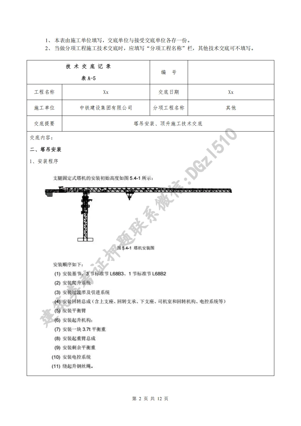 这份塔吊安装、顶升施工技术交底资料,把施工前准备、安装流程、顶升作业要点、安全注意事项等内容梳理得清清楚楚。从基础验收、构件检查,到顶升顺序、附着装置固定,再到现场监护、应急处置,每一步都标注到位,实用性很强。