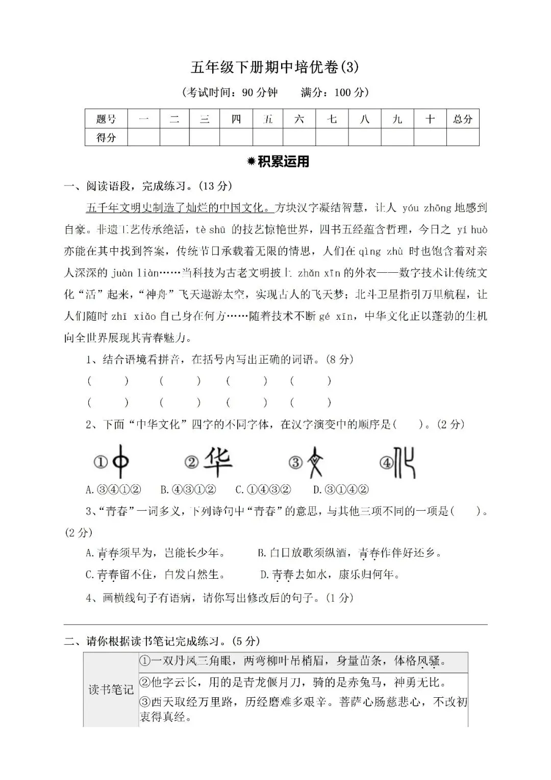 >五年级下册期中培优卷③附答案(免费下载)
