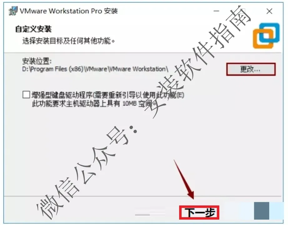 5、点“更改”更改软件的安装目录,建议安装在C盘之外的其他盘符,然后点“下一步”。