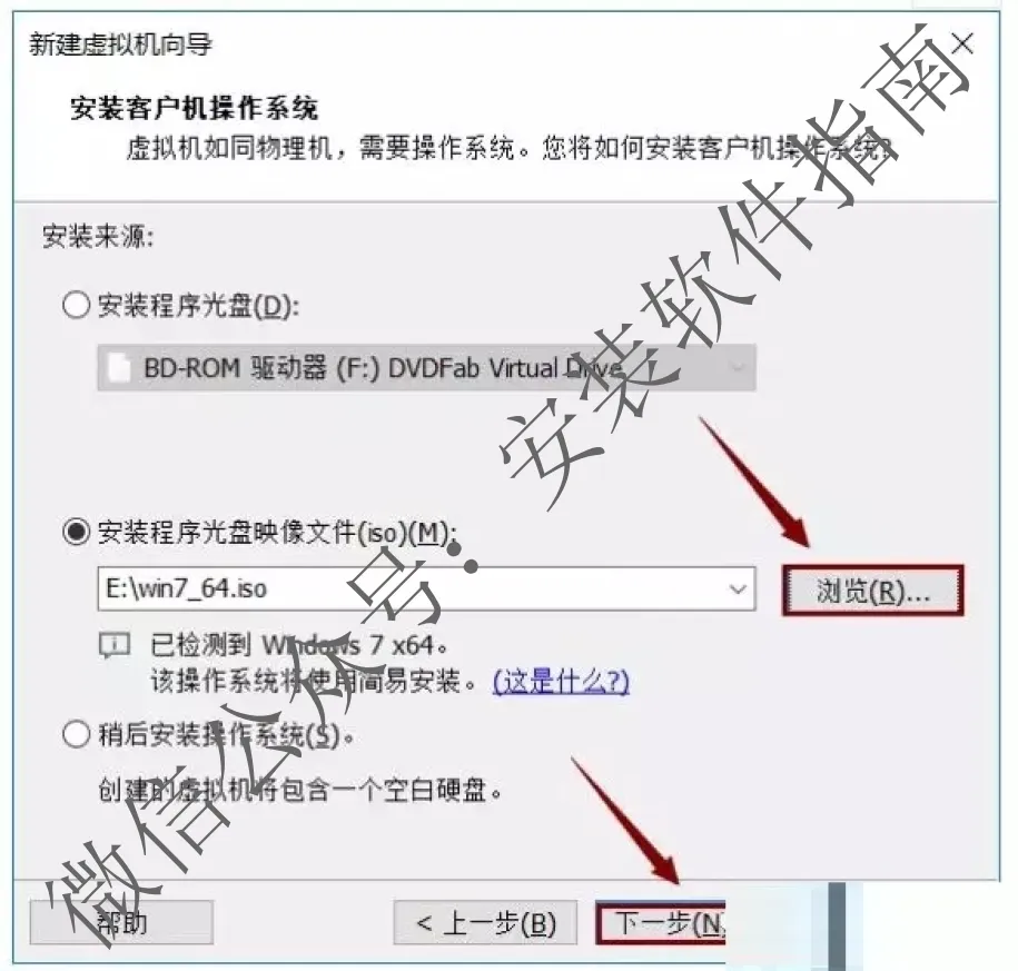 5. 点“浏览”,打开需要安装的系统,小编里打开的是win7的系统文件(用户可在本文开头提供的系统下载地址下载相应的系统文件),点“下一步”。