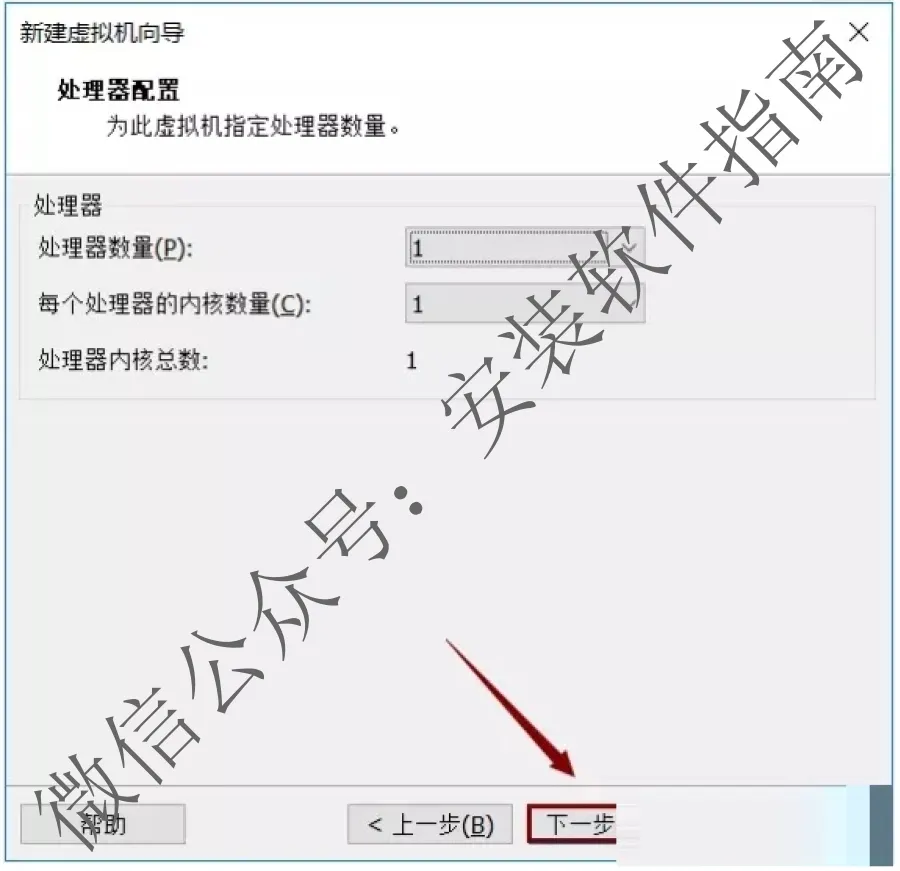 10. 根据电脑配置,选择处理器数量,我这里保持默认,点“下一步”。
