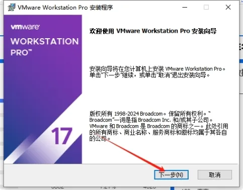 4. 欢迎使用 VMware Workstation Pro 安装向导,点击【下一步】。