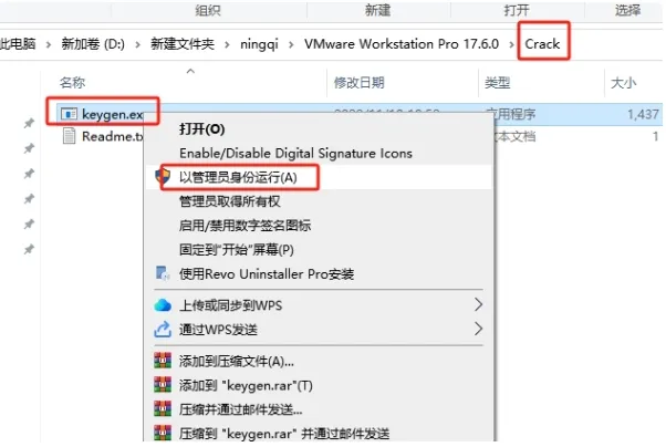 12. 打开【Crack】文件夹,选择【keygen.exe】,鼠标右键以管理员身份运行。