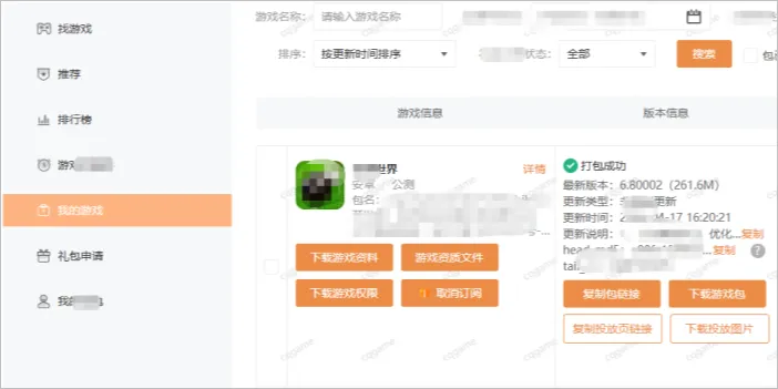 2、登录游戏cps后台,这里我用的阿里游戏cps,一键去打包获得游戏下载链接,一般安卓游戏居多,如图: