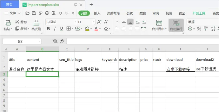 3、打开刚才在安企cms下载的模板填写相关信息,切记,不懂不要乱修改其他信息。如图: