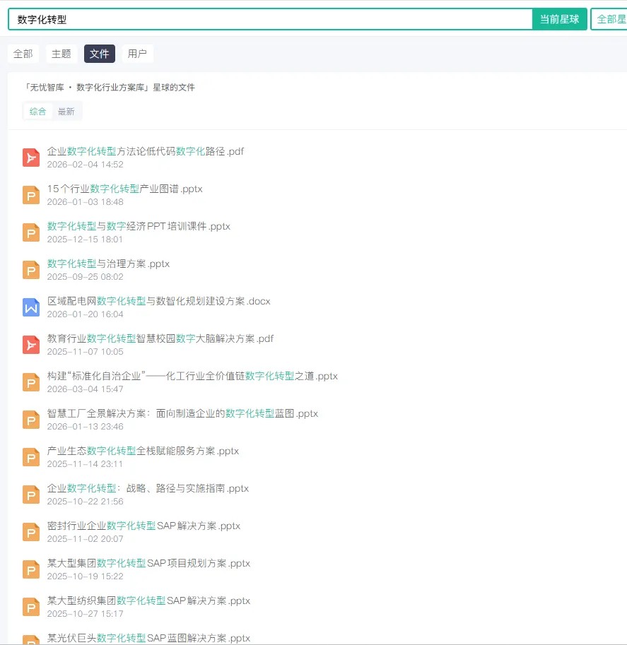 1、【无忧智库 · 数字化行业方案库】,数字工作者必备的专业行业智库。星主历时5年+,聚合多个行业渠道,系统归类整理,沉淀内容超 21万份、总大小 1T+,坚持每日更新,是您工作中的得力助手,助您迅速成为行业方案专家。