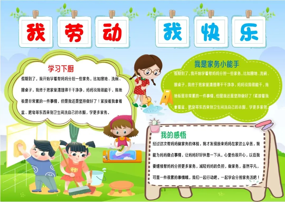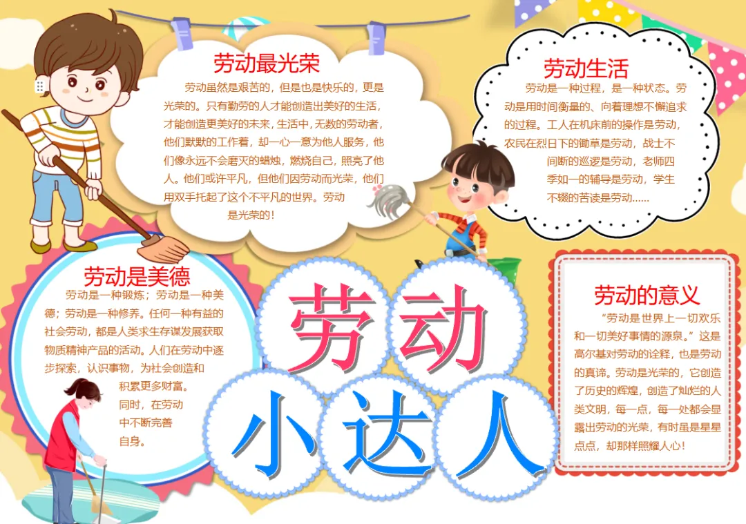 劳动节卡通劳动最光荣扫地拖地锻炼小报家务劳动小报手抄报