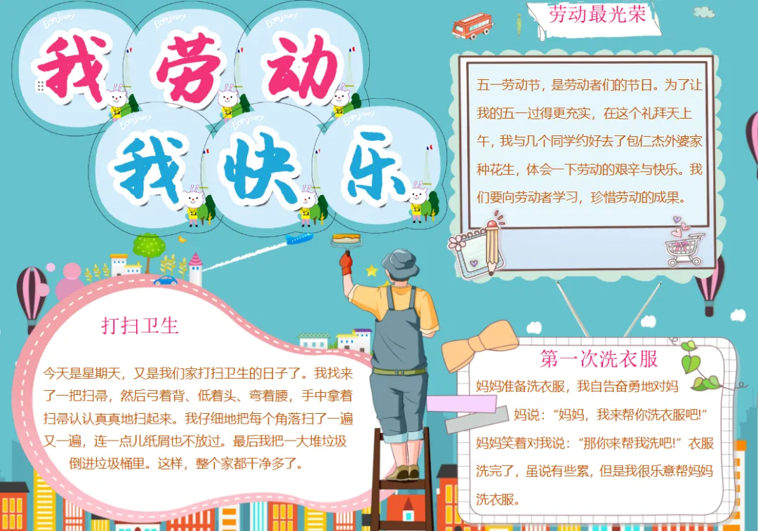 劳动节蓝色卡通我劳动我快乐劳动日手抄报小报家务劳动