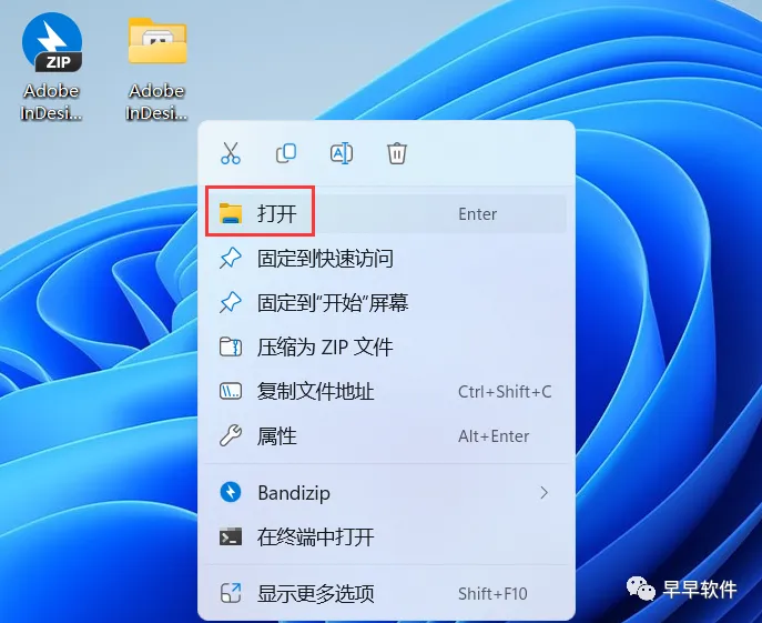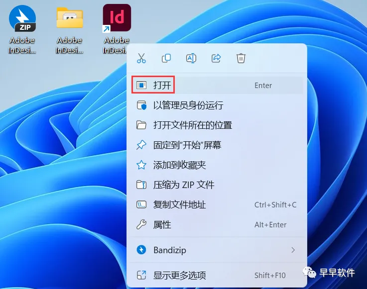 7、回到桌面,右键桌面上的【Adobe InDesign 2023软件图标】,点击【打开】