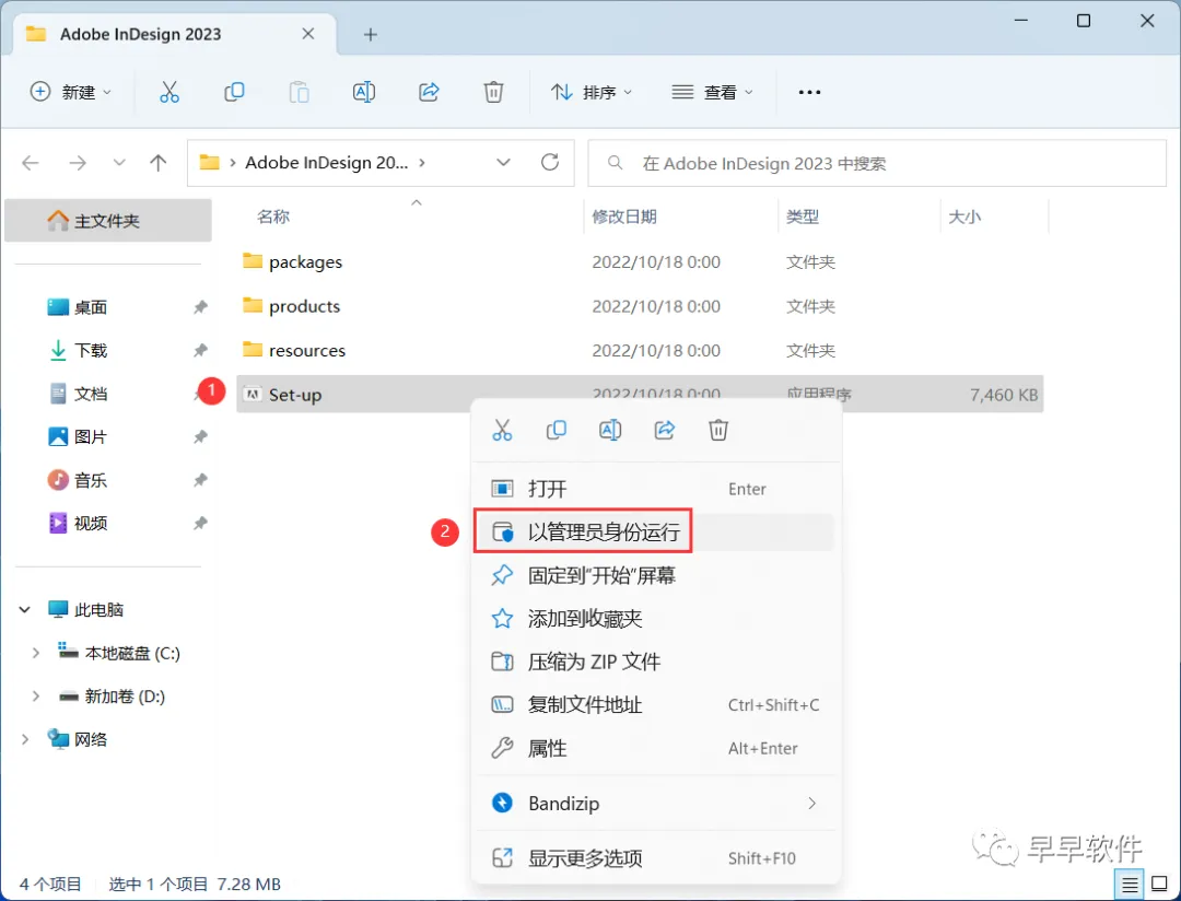 1、下载Adobe InDesign 2023软件安装包到电脑上,右键选择【解压到Adobe InDesign 2023\】