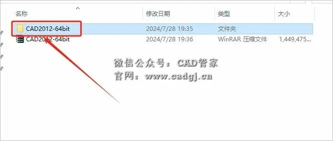 3.打开解压的【CAD2012-64bit】文件夹。