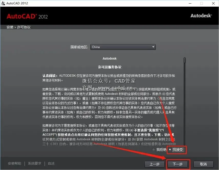 7.选择【我接受】,然后点击【下一步】。