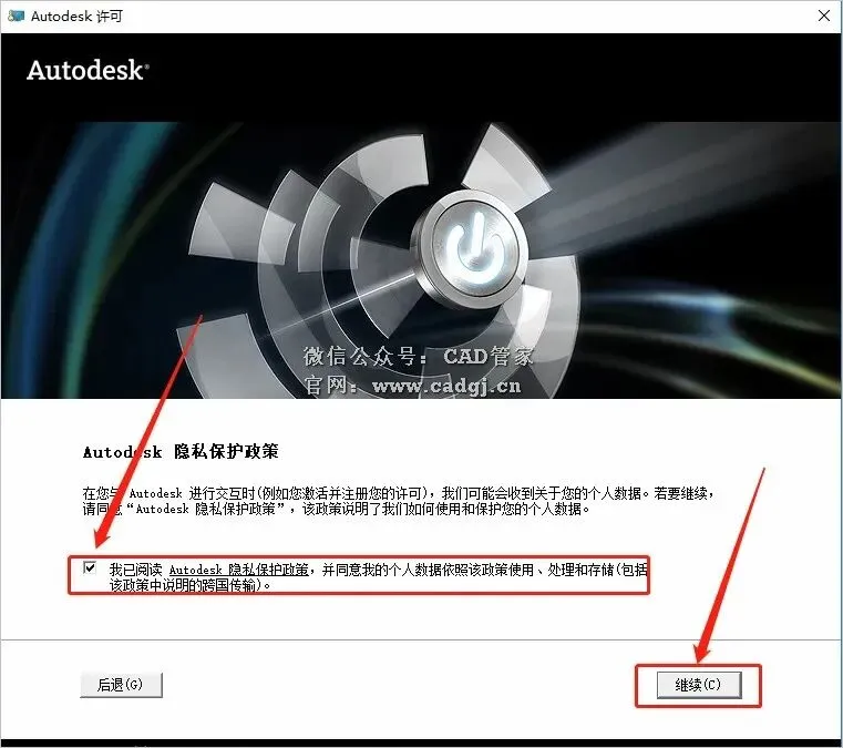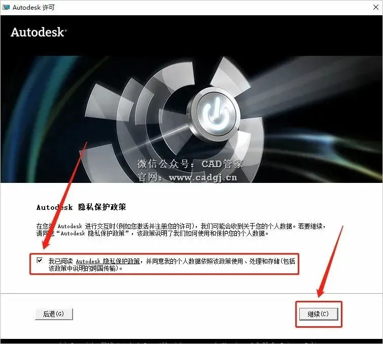 17.勾选【我已阅读···】,然后点击【继续】。
