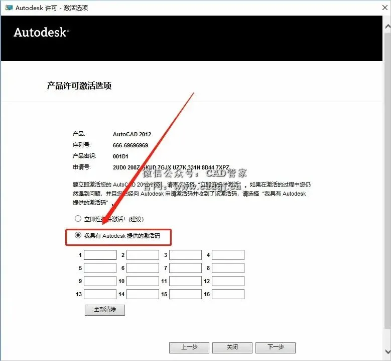 18.点击【我具有Autodesk提供的激活码】。