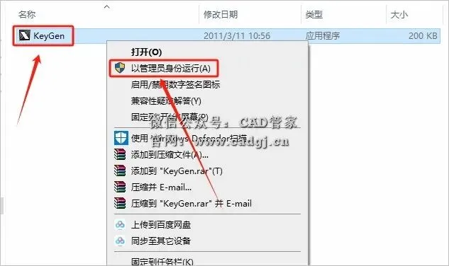 20.鼠标右击【KeyGen】注册机,选择【以管理员身份运行】。
