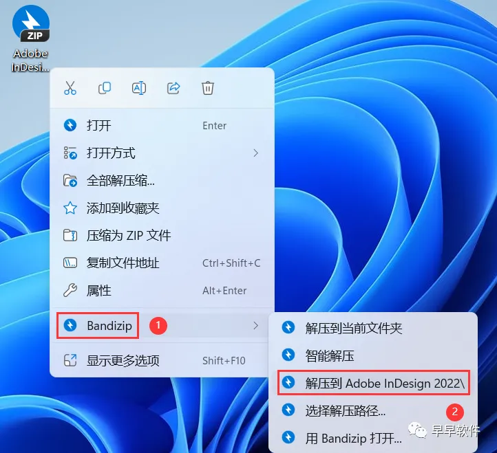 1、下载Adobe InDesign 2022软件安装包到电脑上,右键选择【解压到Adobe InDesign 2022\】