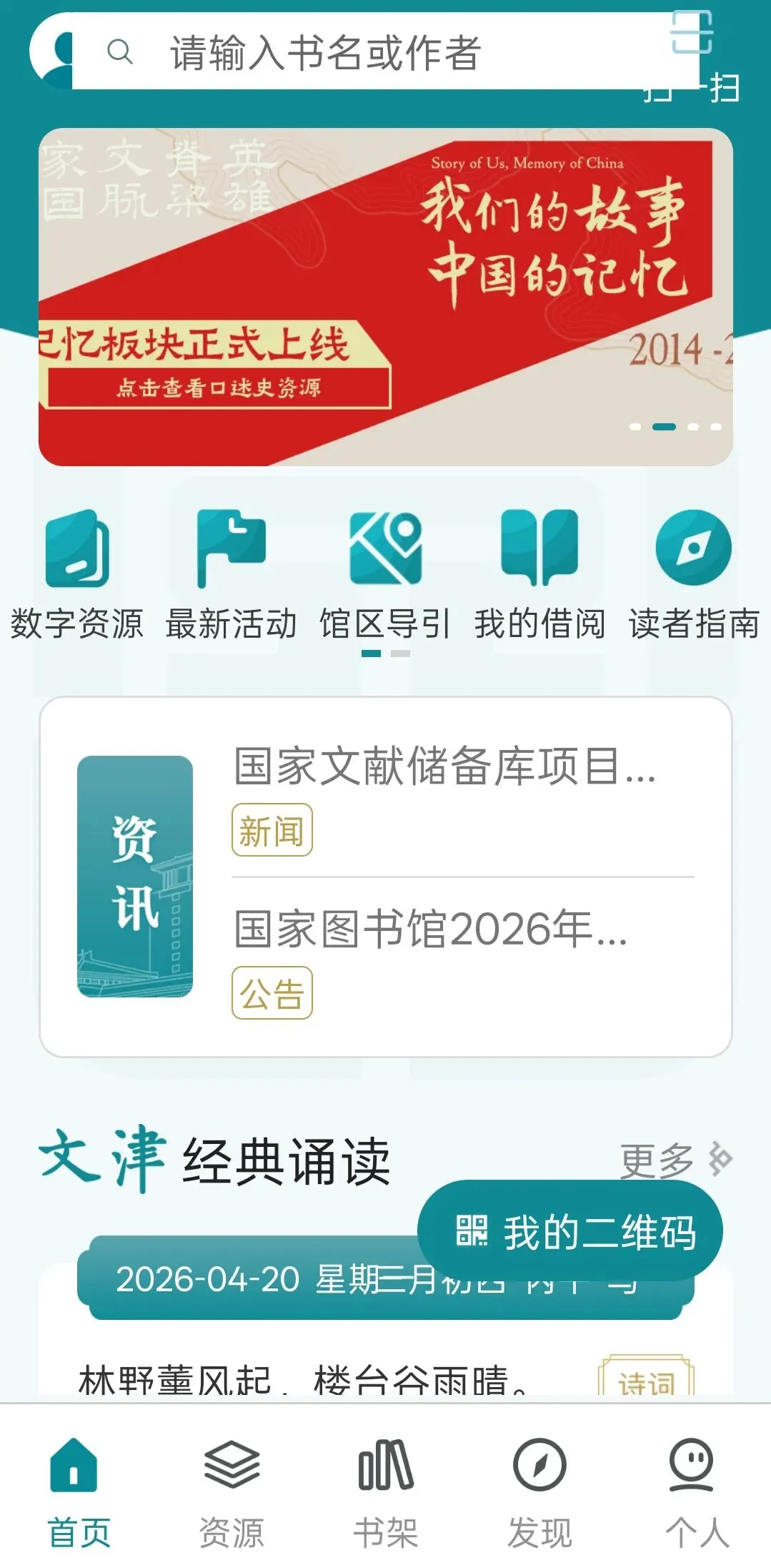 除了手机APP外,还可以通过电脑阅读,打开网址:https://www.nlc.cn/web/index.shtml