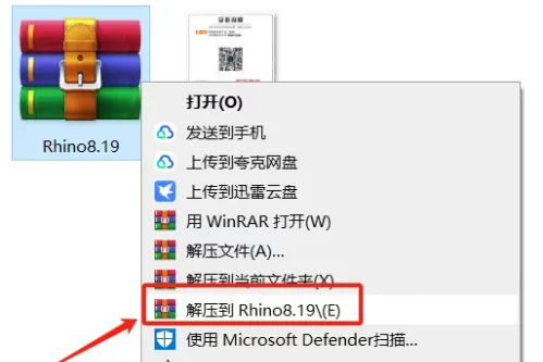 (1)解压安装包:右键【Rhino8.19(64bit)】压缩文件 → 选择解压工具(如 360 压缩、WinRAR) → 点击【解压到 Rhino8.19(64bit)】。易错提示:如果解压失败,请先安装解压软件再试。