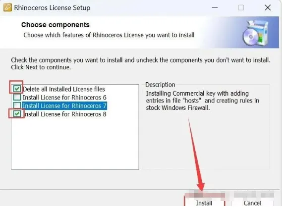 (9)仅保留勾选【Delete all……】和【Install……8】,然后点击【Install】。