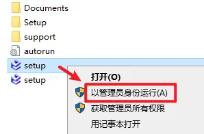 3.找到并选中“Setup”,右键选择“以管理员身份运行”