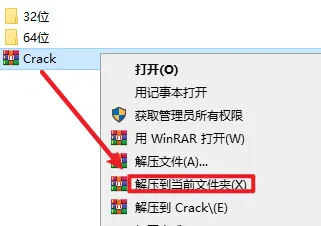 9.返回安装文件夹,选中“Crack”文件,右键选择“解压到当前文件夹”