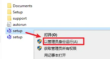 3.找到并选中“Setup”,鼠标右键点击“以管理员身份运行”