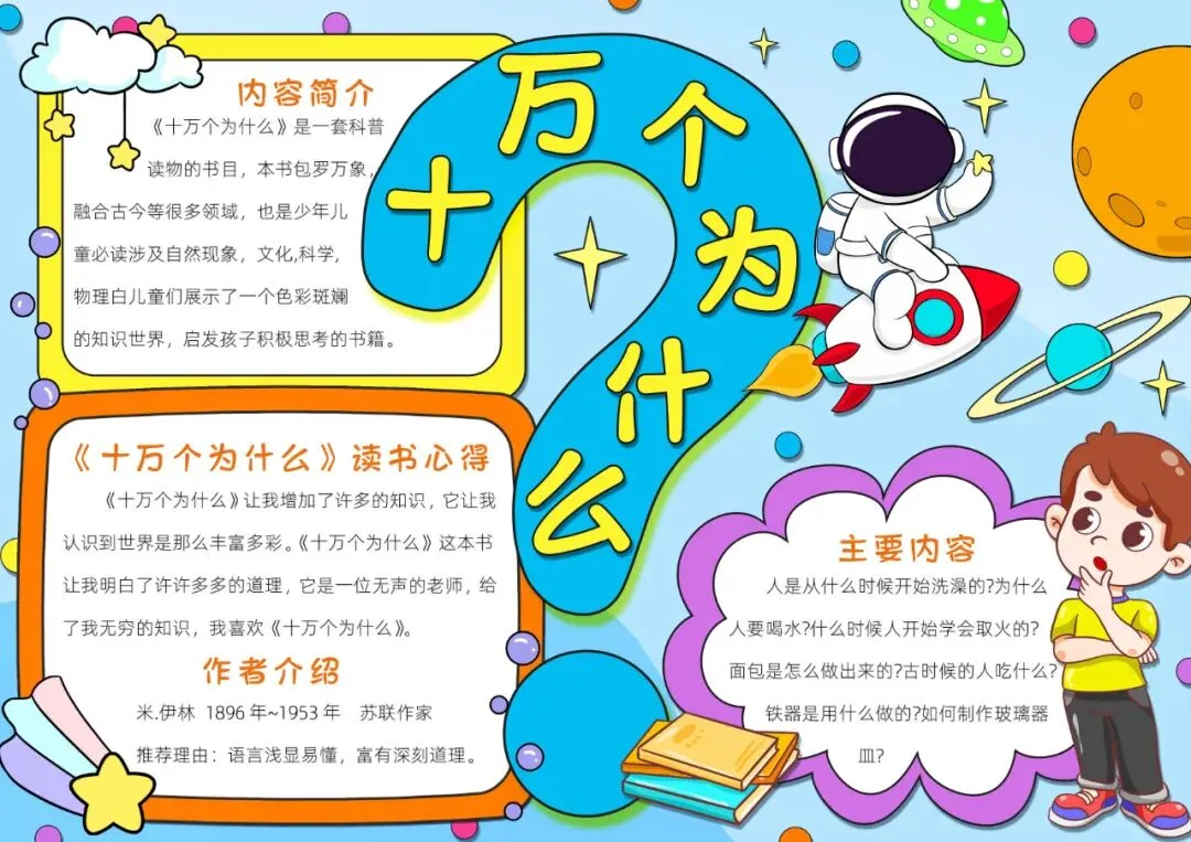 读书卡片阅读彩色卡通十万个为什么小报手抄报读书分享